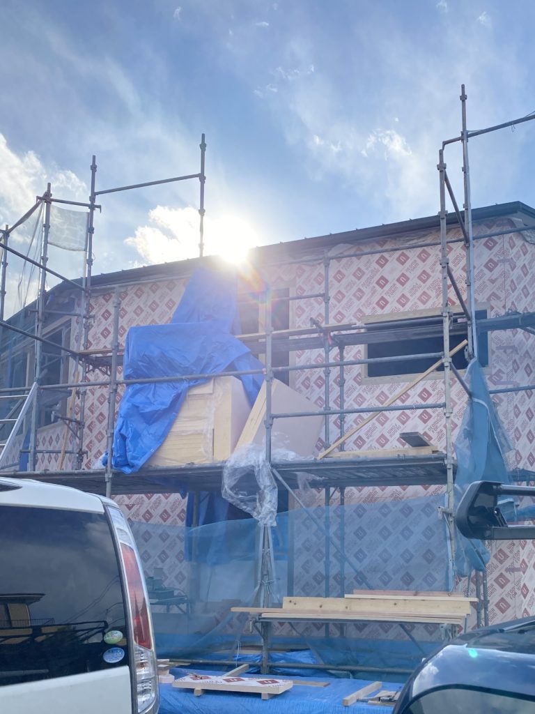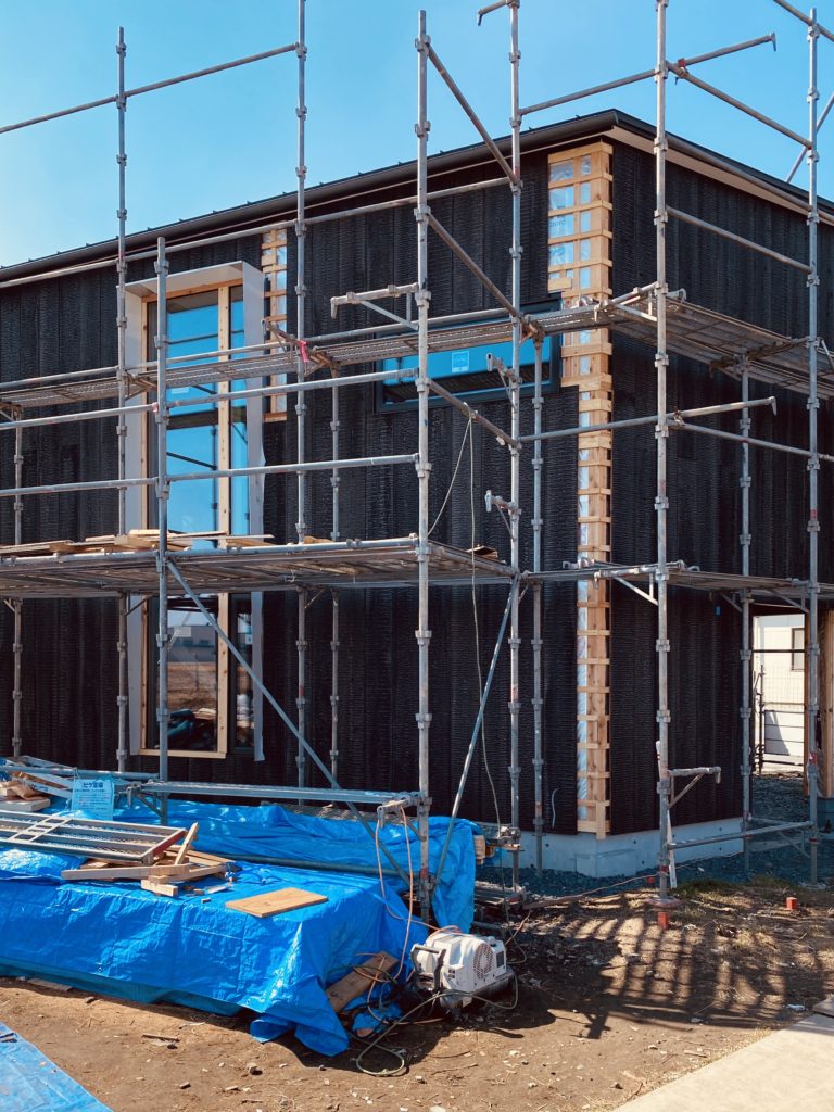 外壁[焼杉]の下には、付加断熱としてフェノバボードを施工。