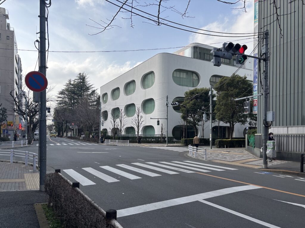 街中に突如現れるオーバル型の開口部が均一に並んだ白い塊。一般的な公共施設らしからぬデザインで圧倒的な存在感があります。。