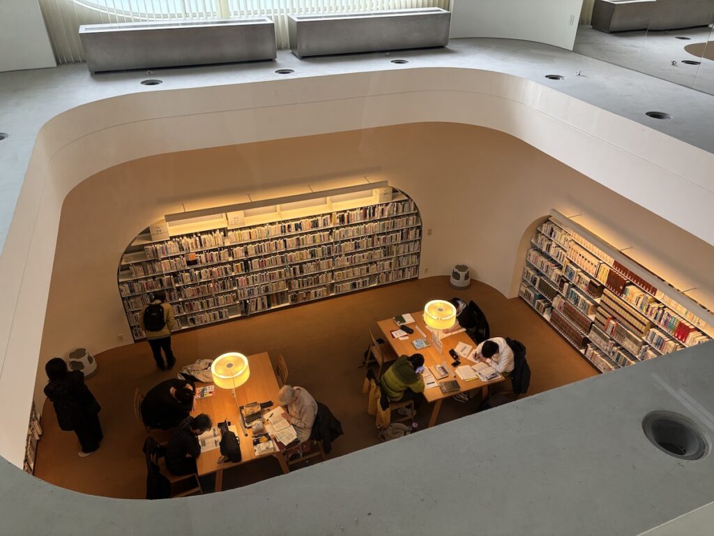 1階からは地下を見下ろせる吹き抜けがあり、地下のメインライブラリーには静かに本を読む人や勉強する人がたくさんいらっしゃいました。